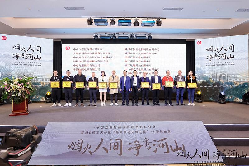 2023年11月28日,以“煙火人間,凈秀河山”為主題的中國五金制品協(xié)會吸油煙機(jī)分會換屆&技術(shù)大會暨“高效凈化環(huán)保之星”10周年慶典在浙江杭州成功舉辦。中國五金制品協(xié)會理事長張東立,專職副理事長孟凡波,中國五金制品協(xié)會副理事長、中國五金制品協(xié)會吸油煙機(jī)分會會長、方太集團(tuán)董事長兼總裁茅忠群,中國五金制品協(xié)會副理事長單位、中國五金制品協(xié)會吸油煙機(jī)分會副會長單位、老板集團(tuán)總裁趙繼宏,中國五金制品協(xié)會副理事長單位、中國五金制品協(xié)會吸油煙機(jī)分會副會長單位、海爾智家副總裁、海爾智家廚電產(chǎn)業(yè)總經(jīng)理吳勇,中國五金制品協(xié)會副理事長單位、中國五金制品協(xié)會吸油煙機(jī)分會副會長、嵊州廚具行業(yè)協(xié)會會長、浙江億田智能廚電股份有限公司董事長孫偉勇,中國五金制品協(xié)會吸油煙機(jī)分會副會長、杭州德意電器股份有限公司董事長高德康,火星人廚具股份有限公司董事長兼總經(jīng)理黃衛(wèi)斌,浙江萬事興電器有限公司董事長王俊,以及來自副會長單位、理事單位、會員單位等近90家企業(yè)140余名嘉賓代表出席會議。同時(shí),本次活動邀請到中國日用五金技術(shù)開發(fā)中心檢驗(yàn)室主任金鋒,西安交通大學(xué)教授劉小民,奧維云網(wǎng)總裁郭梅德,中國科學(xué)院過程工程研究所研究員李雙德,創(chuàng)研智能集團(tuán)董事長張人斌分別作主題分享。